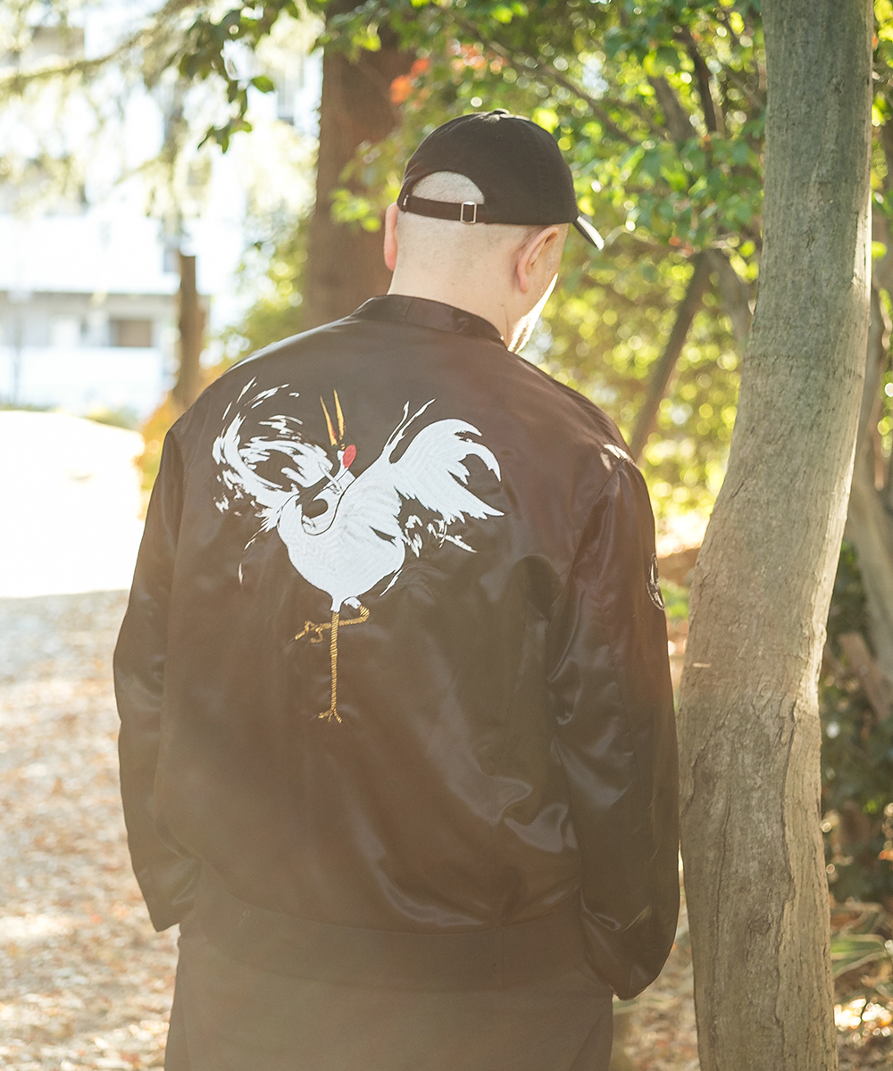 鶴刺繍ブルゾン
