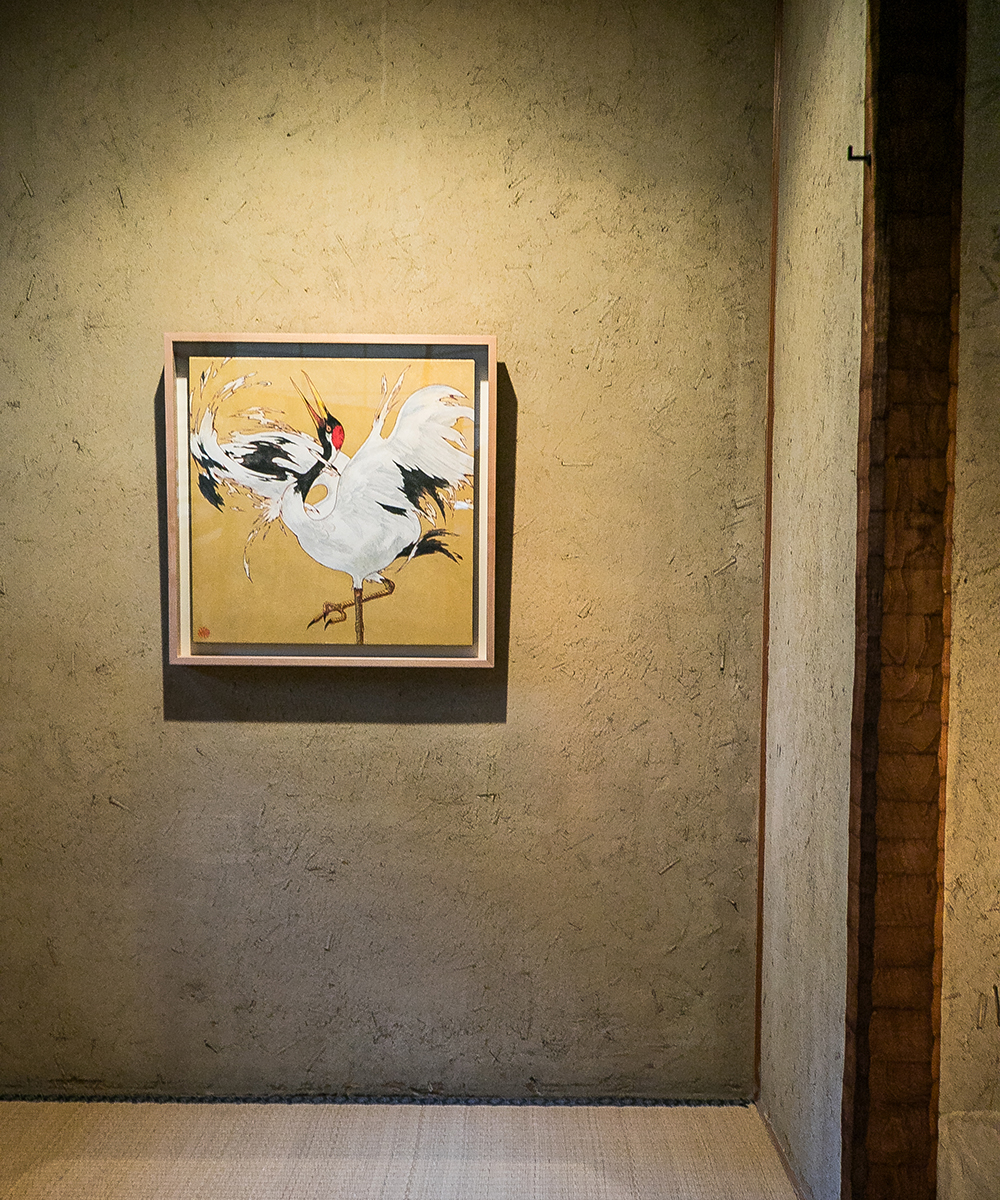 ・日本画家・樋口絢女氏に特別図案を依頼した「鶴」の刺繍を桐生、笠盛社に依頼