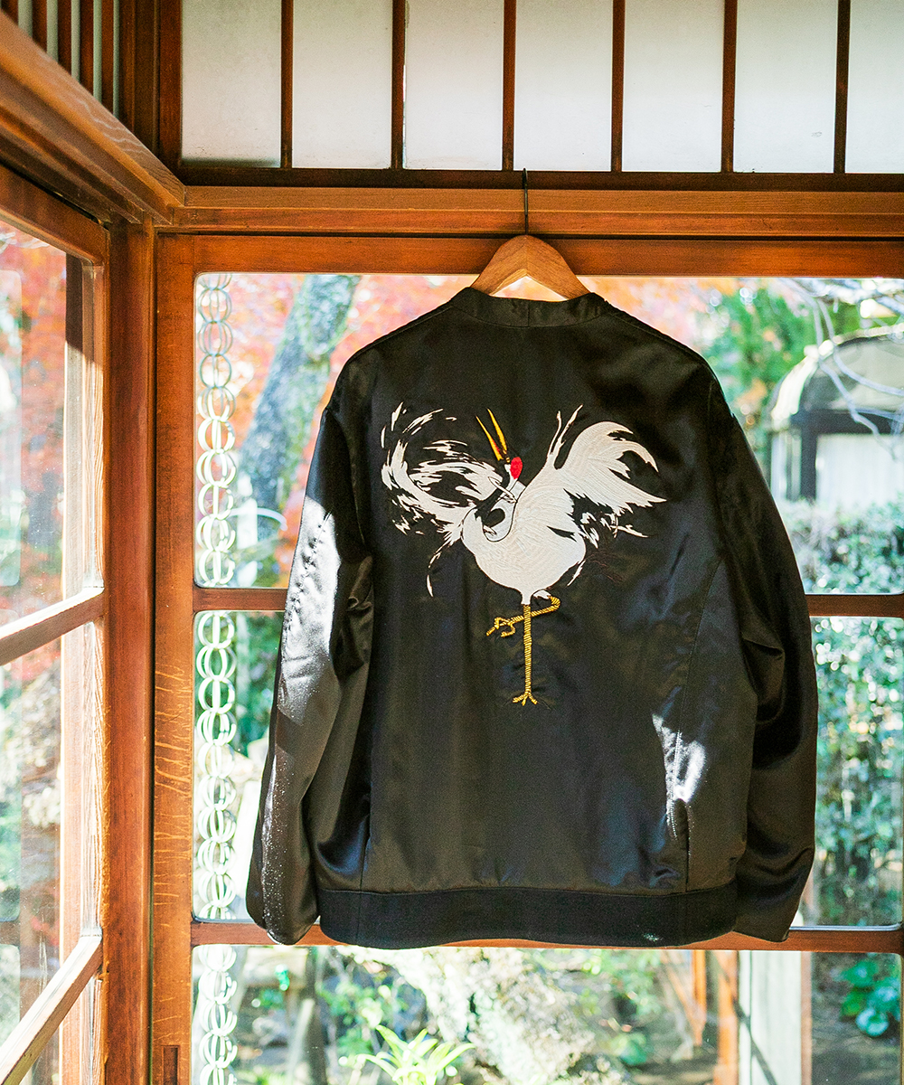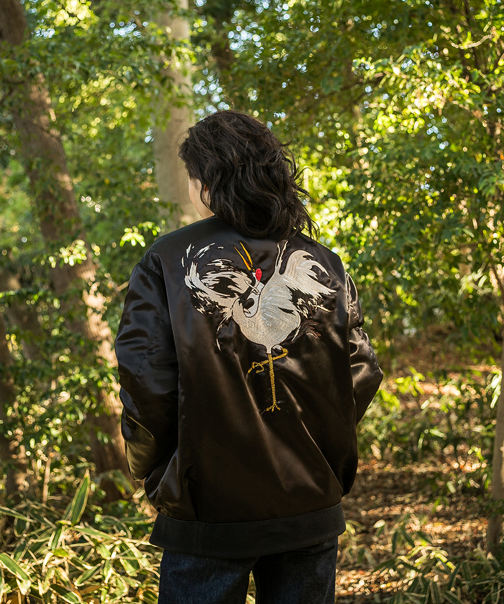 鶴刺繍ブルゾン